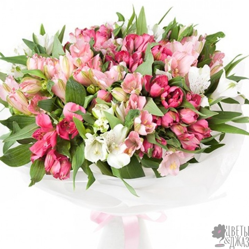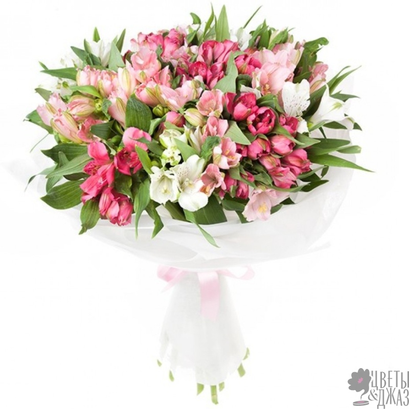 Букет состоит из MIX из 19 альстромерий, красивая упаковка, атласная лента.