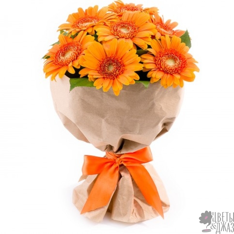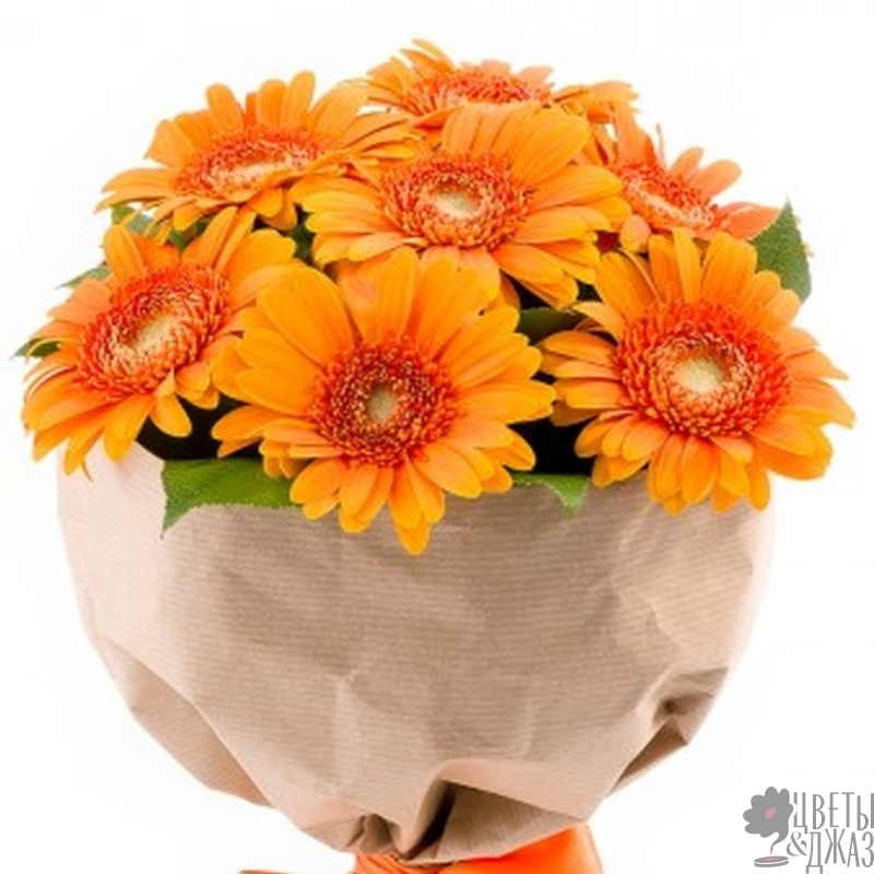 Букет из 7 оранжевых гербер в крафте