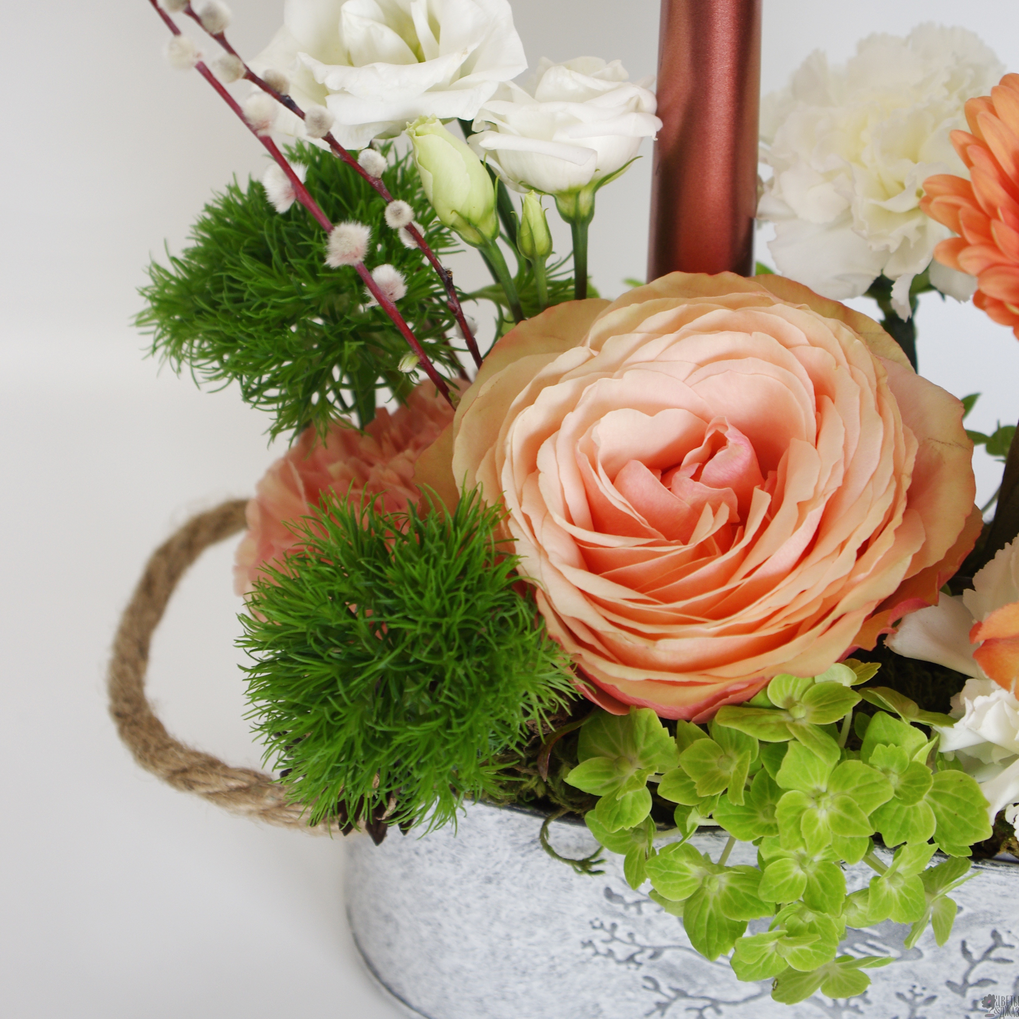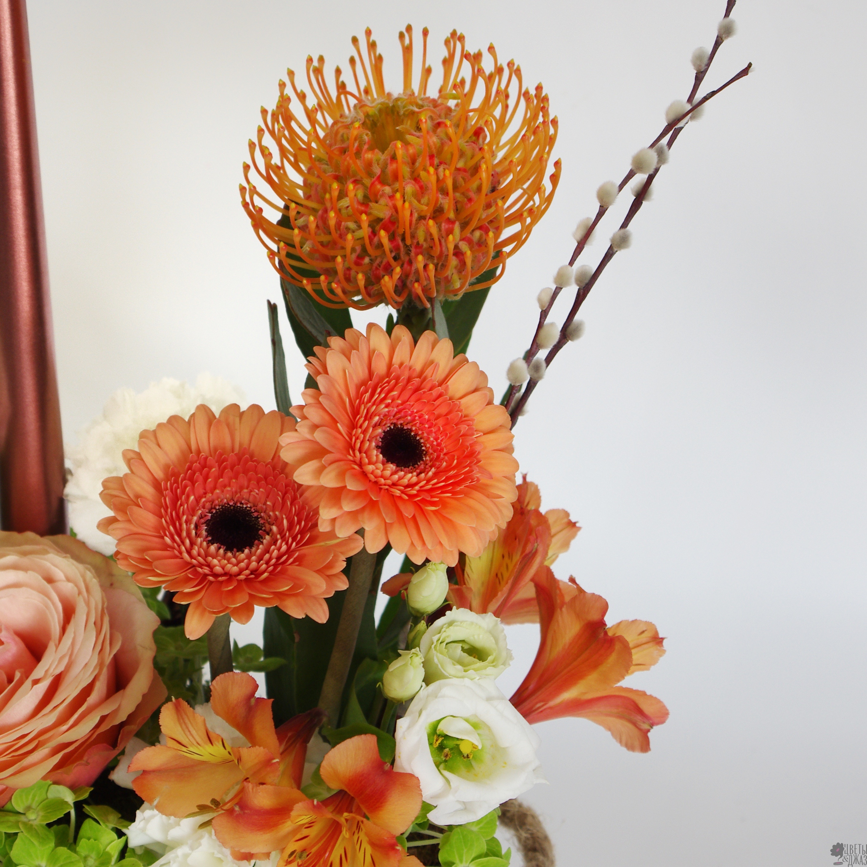 Гербера, Гортензия, Грин белл, Леукоспермум, Роза, Эустома