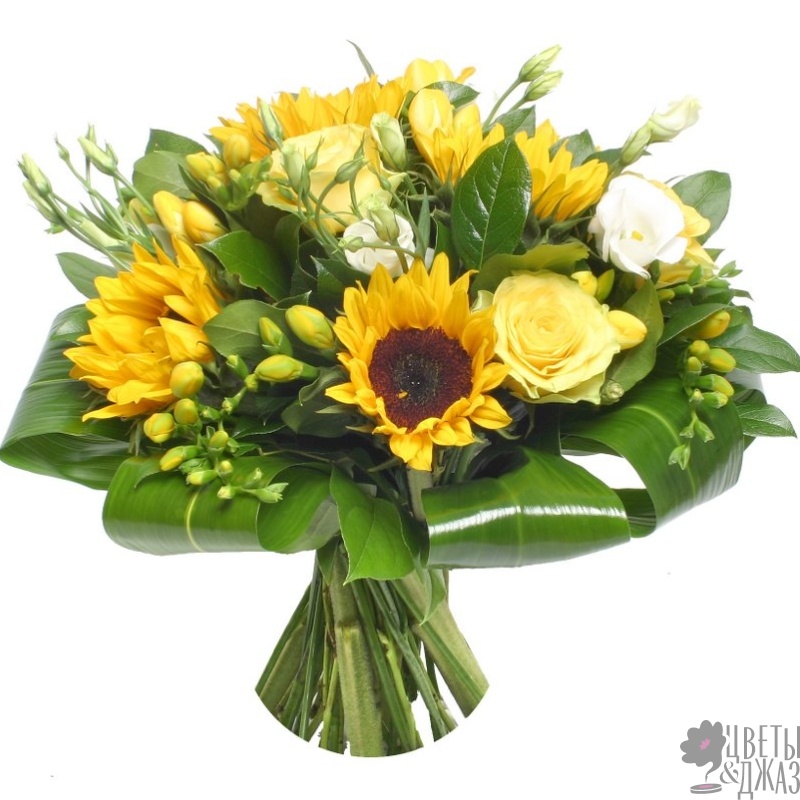 Подсолнух 5 шт., Роза 3 шт., Фрезия 3 шт., Эустома 2 шт. |