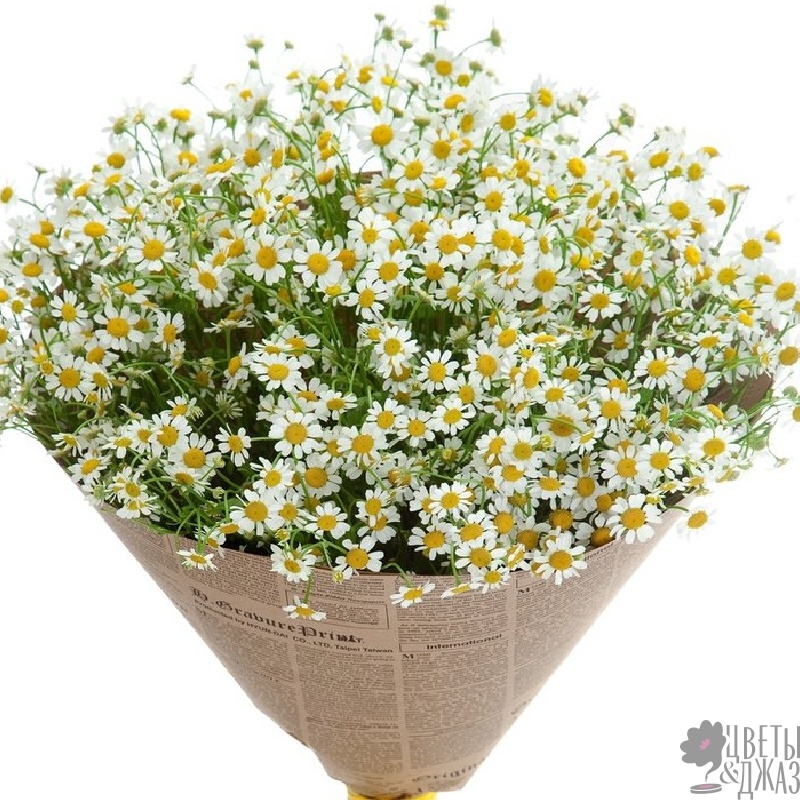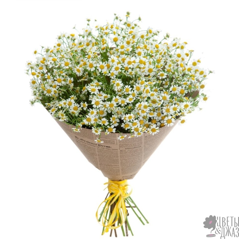 Букет состоит из 21 ветка танацетума, крафт, атласная лента.