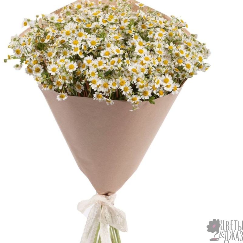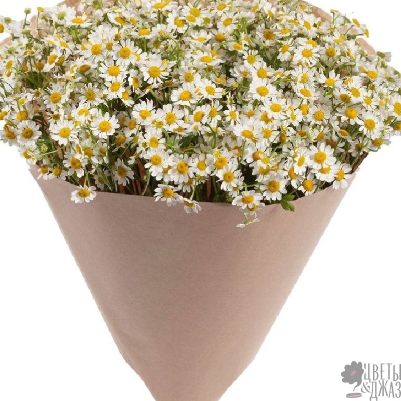 Букет состоит из 25 веток танацетума, крафт, атласная лента.