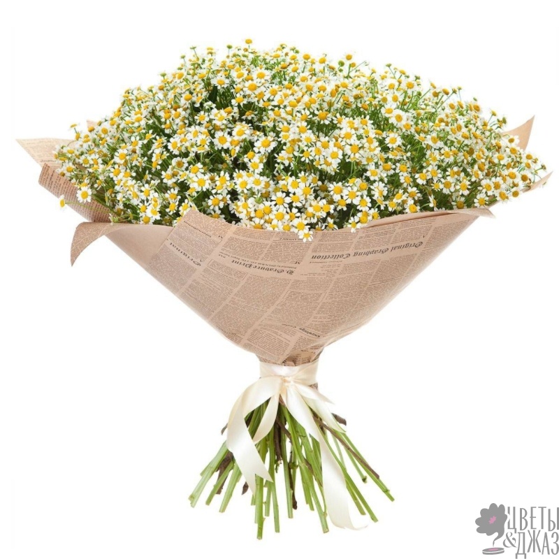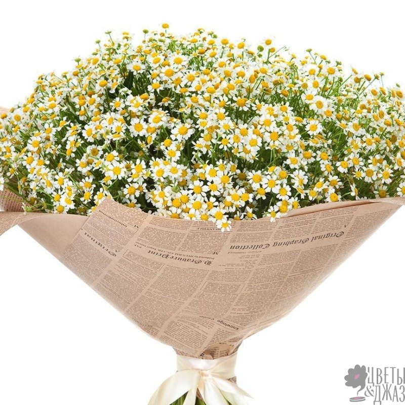 Букет состоит из 35 веток танацетума, крафт, атласная лента.