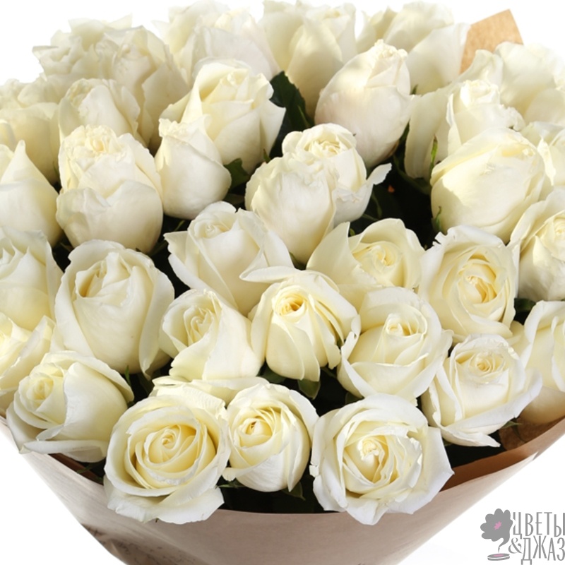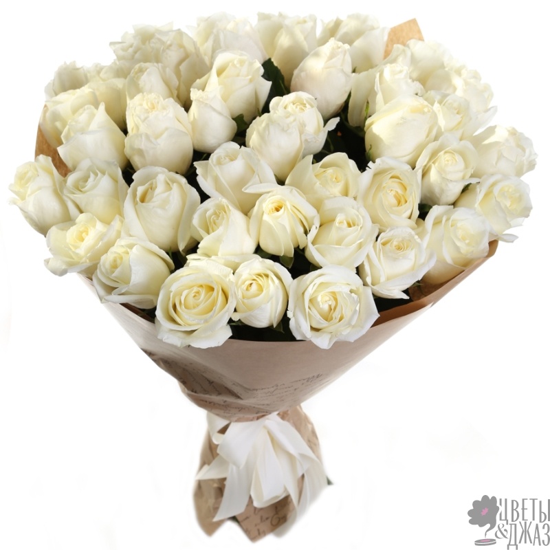 Букет состоит из 31 белая роза, крафт, атласная лента.
