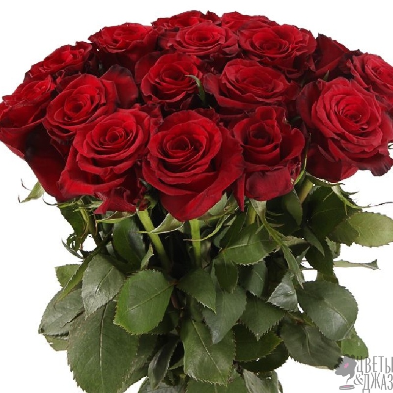 Букет состоит из 19 бордовых роз, прозрачная упаковка, атласная лента.
