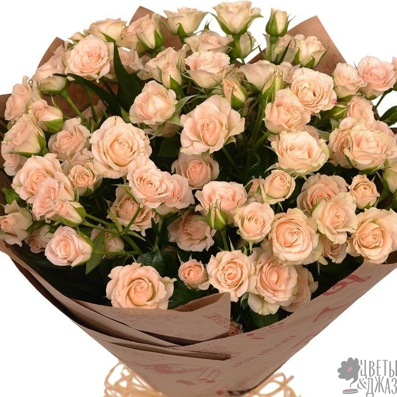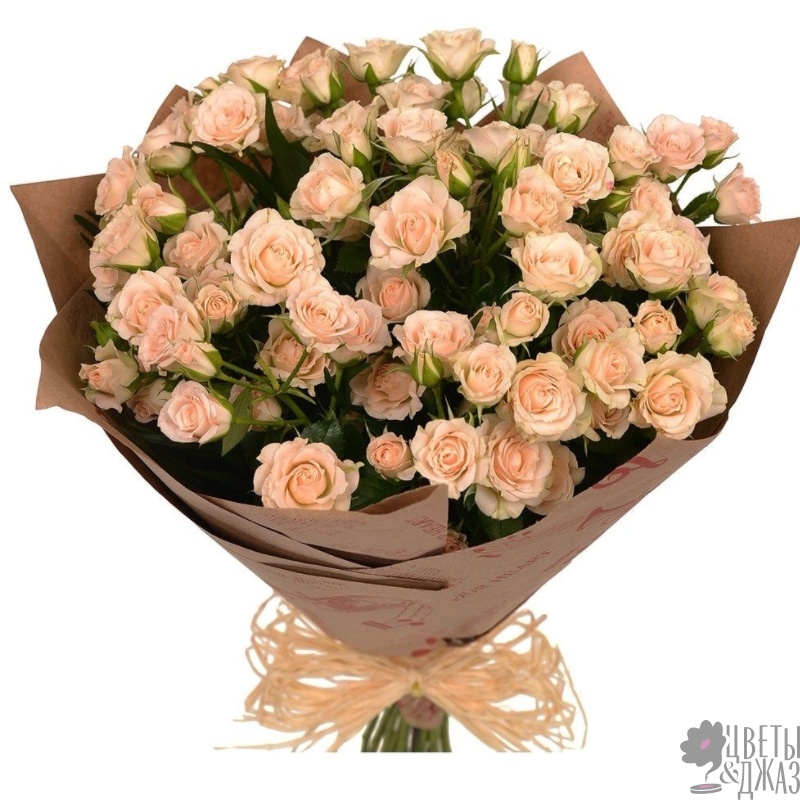 Букет состоит из 11 веток кремовой кустовой розы, крафт.