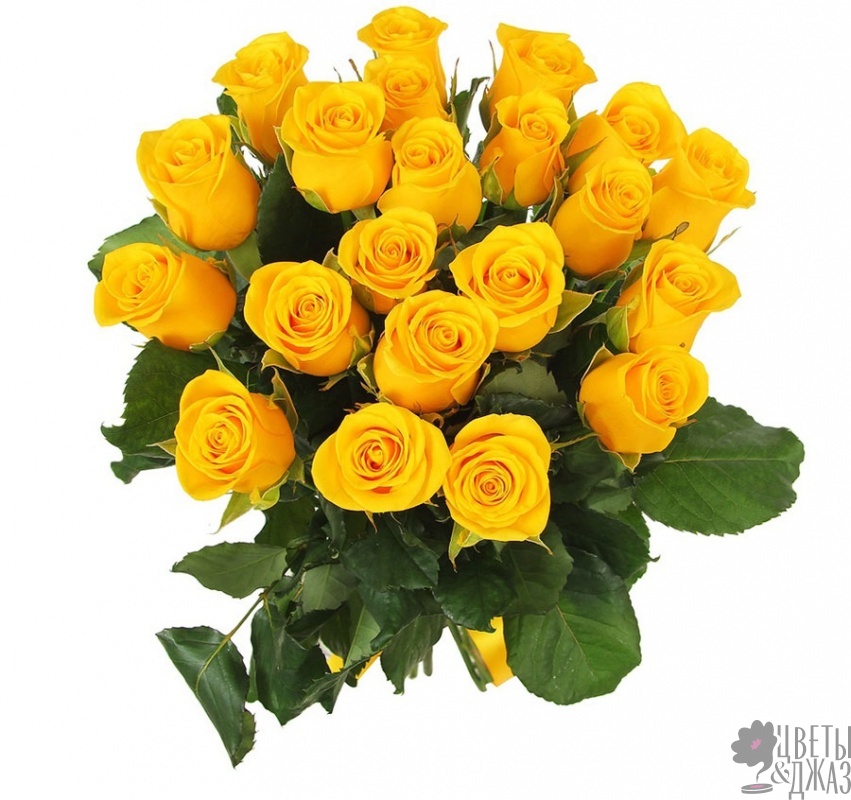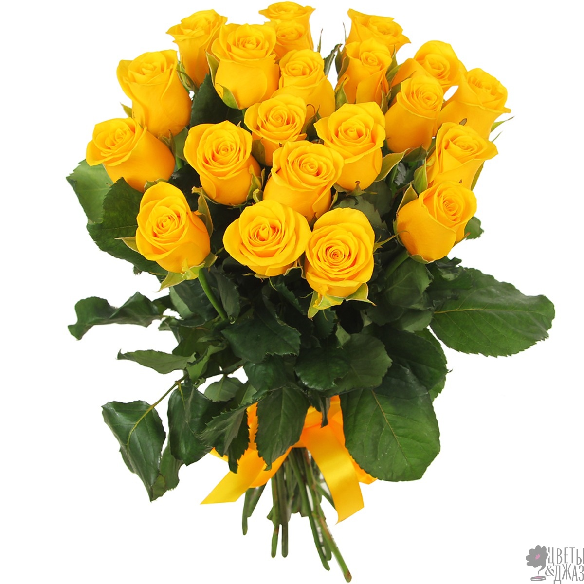 Букет состоит из 21 желтая роза, прозрачная упаковка, атласная лента.
