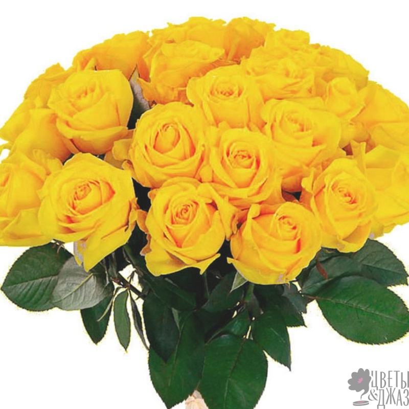 Букет состоит из 31 желтая роза, прозрачная упаковка, атласная лента.