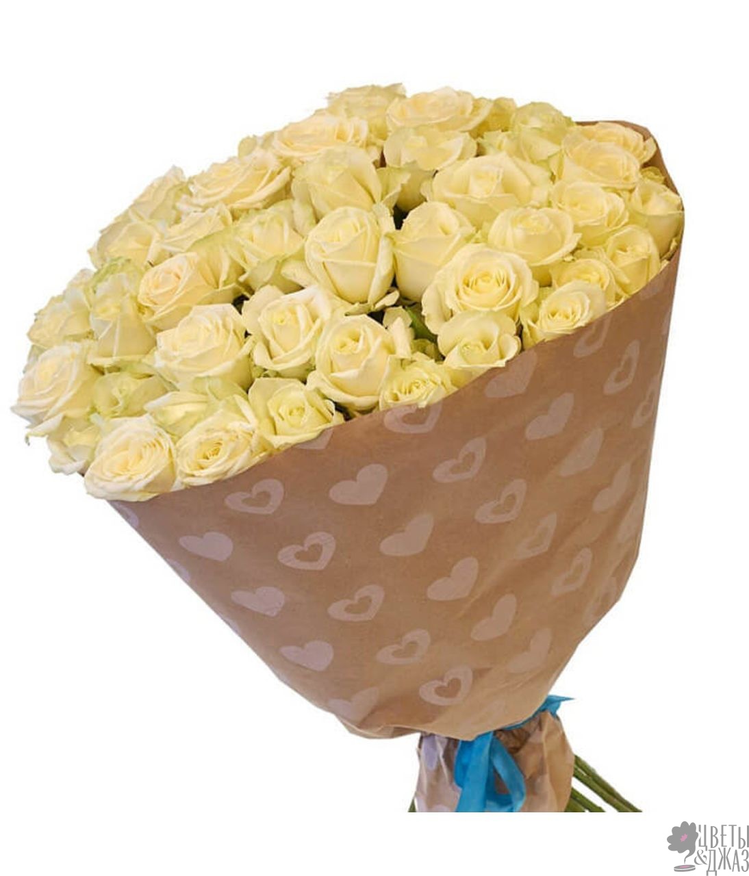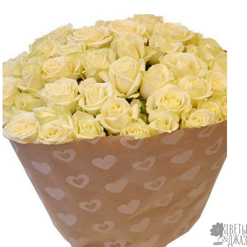 Букет состоит из 51 кремовая роза, крафт, атласная лента.