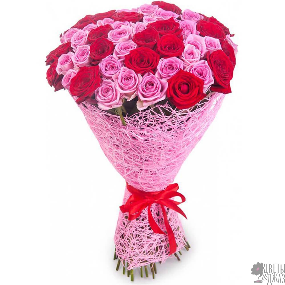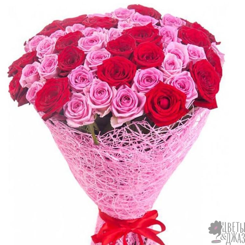Букет состоит из 23 красные розы, 22 розовые розы, красивая упаковка, прозрачная лента.