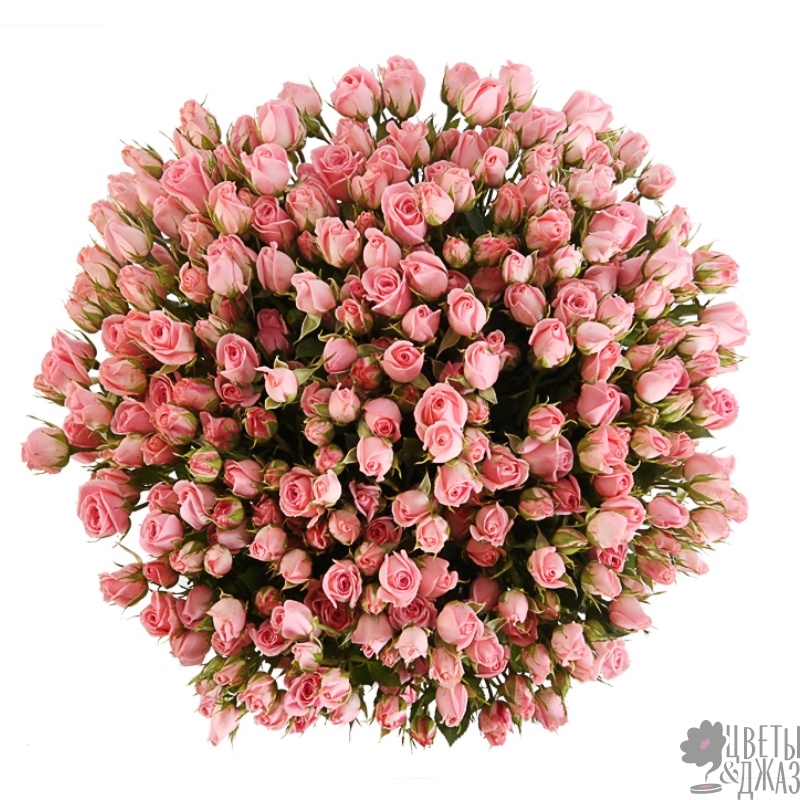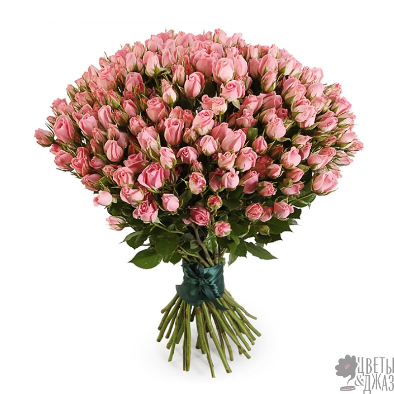 Букет состоит из 21 ветка кустовой розовой розы, красивая упаковка.