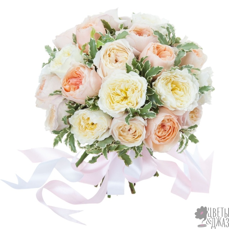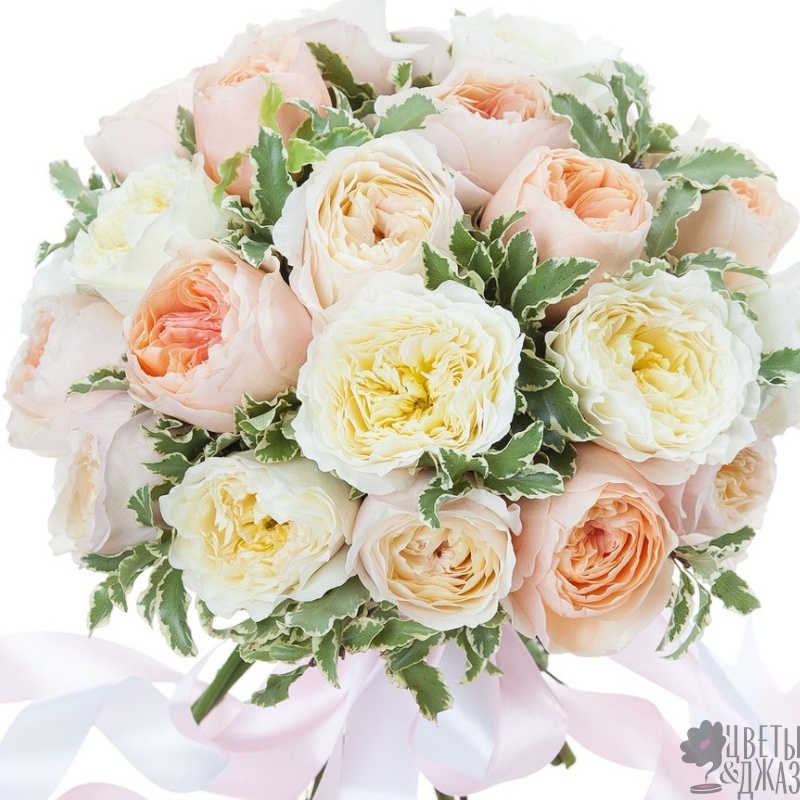 Букет состоит из MIX из 25 пионовидной розы, питтоспорум, прозрачная упаковка, атласная лента.