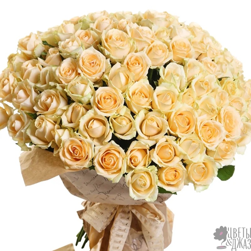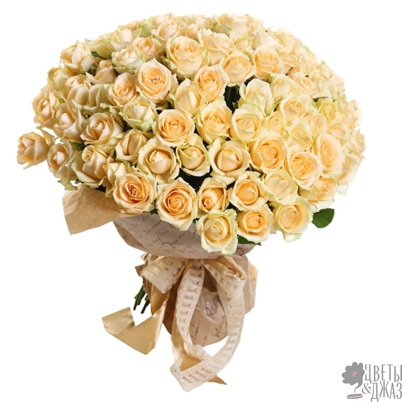 Букет состоит из 101 кремовая роза, крафт, атласная лента.