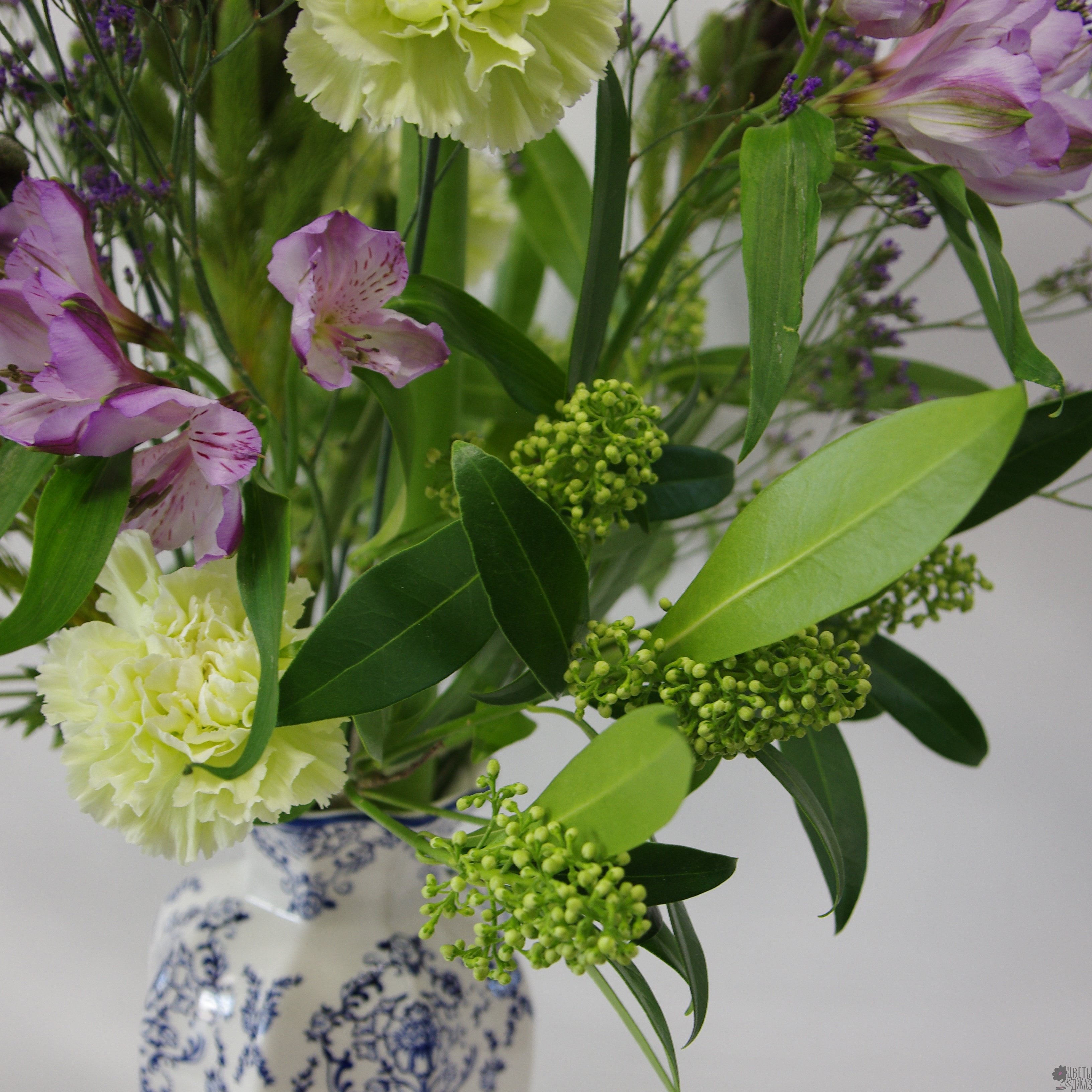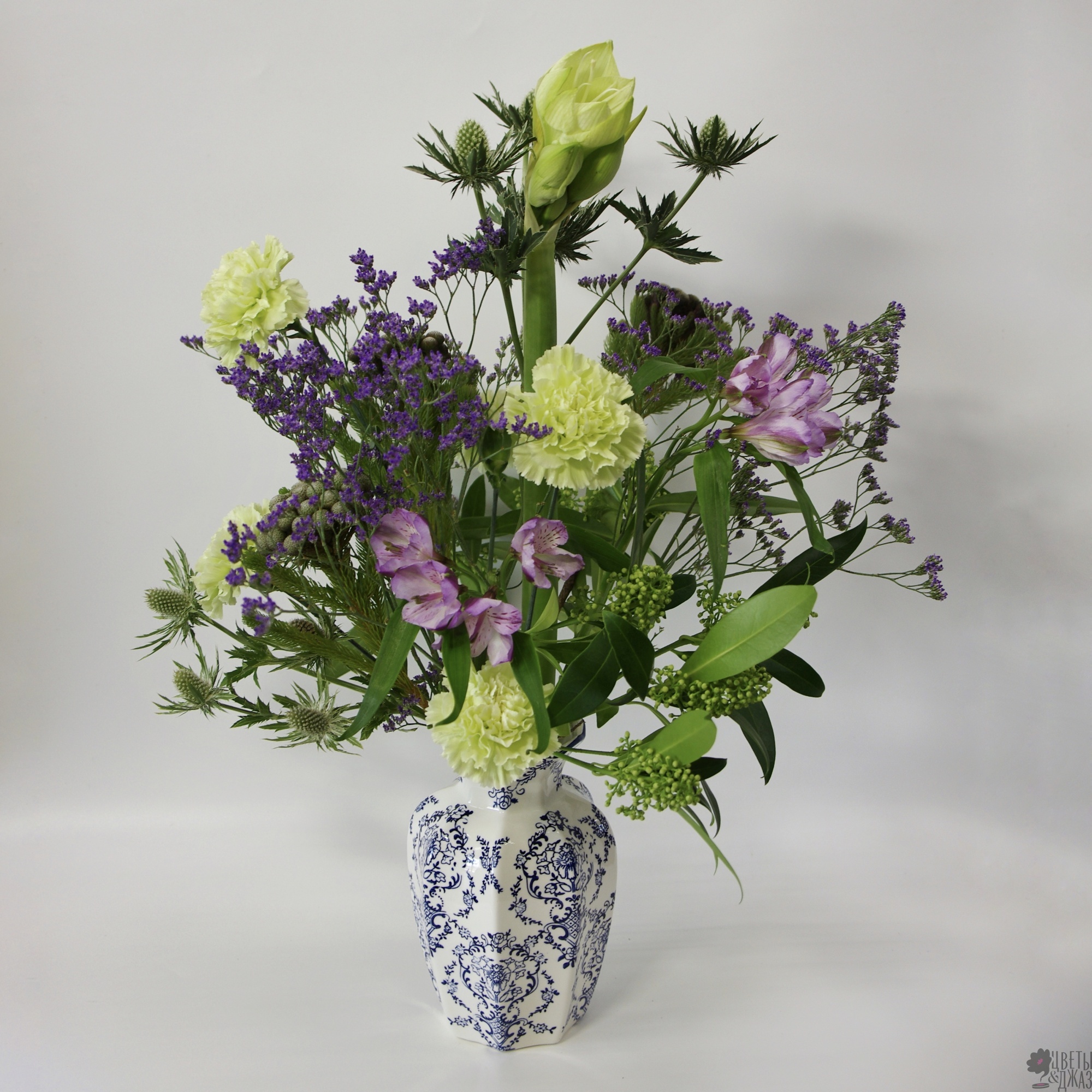 Альстромерия, Амариллис, Гвоздика, Лимониум, Скиммия, Эрингиум
